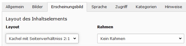 Inhaltselemente, welche als Kachel dargestellt werden, besitzen ein Kachellayout und in den meisten Fällen keinen Rahmen.
